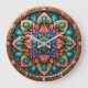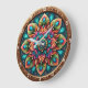 Transform your space with the hypnotic beauty of the Radiant Peacock Feather Mandala clock. This stunning timepiece features a high-definition graphic that creates a breathtaking kaleidoscopic effect. The intricate mandala design is composed of layered peacock feather motifs in a vibrant palette of teal, emerald, magenta, and warm amber tones. Every detail, from the delicate "eyes" of the feathers to the swirling organic patterns, radiates from the center with high-energy precision. The clock face is encased in a rich, wood-textured border featuring carved scrollwork accents and stylized white numerals. While the artwork masterfully mimics the dimensional depth of layered paper-cut art or hand-carved wood, this is a durable high-definition graphic application on a premium clock face. It is a prestigious statement piece for any modern or bohemian-inspired interior.