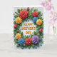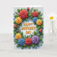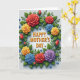 This card features large, golden, beveled letters reading “HAPPY MOTHER’S DAY” centered on the front, with the text sitting neatly inside a floral ring. Soft, diffused lighting gives the design a gentle glow, and the raised flowers cast small shadows that add depth and a cozy, caring feel ❤️. The background is a calm, light gray that keeps attention on the message and the blooms. Around the words, a sculpted wreath of roses suggests closeness and affection, like a warm embrace held in petals. The roses appear in rich reds, sunny yellows, cool blues, and deep purples, each built from layered, curled petals that look carefully formed. Green leaves with visible veins and a few small buds nestle between the larger blossoms, adding a tender, nurturing touch 🌼. Tiny star-shaped blue flowers and small green round accents are sprinkled throughout the wreath, completing the ring around the central gold text.