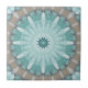 Ceramic tile featuring an original geometric floral sea star design based on images of the beach and ocean. A beautiful nature inspired design in fresh mint and pale turquoise with sand colors. The image is large enough for both the small or large size tile and will fit nicely in a kitchen or bathroom.