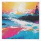 Positioned on the right side, the sun casts a warm glow, accompanied by a striking white ray that extends across the canvas, adding a touch of celestial magic. The water below mirrors the celestial spectacle, showcasing a fusion of blue, pink, and white tones that echo the vibrant landscape "Radiant Serenity" invites you to witness the vibrant dance of colors, where the brilliance of the sunset is mirrored in the tranquil waters below. This painting is a visual symphony, a testament to the beauty of nature's transitions, and a captivating addition to any space seeking a burst of bright, serene energy.