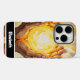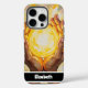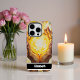 Vibrant phone case design depicting hands holding a glowing yellow circle, showcasing creativity and warmth. Personalized name detail adds a touch of individuality, making it a great accessory or gift choice.