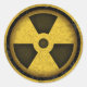 Grungy radiation/radioactive warning symbol, black/yellow, heavily distressed. On t-shirts, sweatshirts, buttons, gifts.