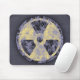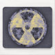 Grungy radiation/radioactive warning symbol, black/yellow over purple, heavily distressed. On t-shirts, sweatshirts, buttons, gifts.
