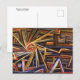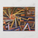 A fine art postcard with the painting Radiation and Rotation by Paul Klee (1879-1940). This geometric abstract showcases lines radiating from a circle. Klee, a Swiss-born German artist, employed color theory in his work