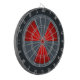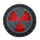 Red and gray radiation warning symbol dart board.