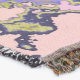 A quality printed throw has its advantages. This is a much finer weave throw than its loopier cousins, and though lighter, it is worth the investment for custom room accessorizing. The back is much prettier than the typical brown, and the fringe on the long sides very vivid, the selvage nicely done. Before photographing, I washed the throw in cold water, delicate, with a thicker woven throw the same size. On tumble dry low, this throw was dry in half the time as the other. This is a very practical quality if you use throws for furniture covers or to wrap up in frequently. The sleekness of the fabric makes it a great layer for accenting or protecting without the feeling of sitting on too much stuff. Perfect for napping or when you feel a light chill coming on. The color printing is beautiful and on this fabric, matched the design and color of my Photoshop image. This is an advantage for blending room fabrics and colors. The fringe on the short sides prints the colors from the design image and therefore varies from the side fringe. I streaked a white fractal line through the plaid pattern to give the illusion of weaving. This printed as crisp as an illusory thread, and put some white in the short side fringe, showing another advantage of print vs loomed- for artistic purposes, line lines, detail, and color integrity can be planned and preserved. My loomed throws have color limitations and more of a needlepoint texture. Print throws reproduce an exact image. The throw felt a little stiff straight out of the package, but this went away in the first delicate wash. Of course I searched the wash water for ink or bleeding and there was none.