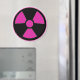 Trefoil radioactive symbol on a magnet in a magenta like color. Stick these anywhere you'd like, give out to friends in party favors and more!