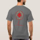 My 11 yo wore adult XL (5’7” 165#). The 8yo is small framed. She wore adult small and tied it in the back. Grandma wore adult large with long sleeve shirt underneath. Tall girl adult medium. Dark haired male adult large. Good quality dark Heather gray, Gildan brand shirt. -it was next up from basic choice and cost about $20 per shirt. Not too thick or thin. Washed and dried well, no major shrinkage. Not see-through. Can wear a bra under it fine. Screen print is just as shown and well done, front and back.