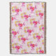 Cute watercolor art of a girlie rag doll repeat patterned on a throw in pink, red and yellow. Would make a great baby shower gift, or kids dolly themed room gift. Original whimsical watercolor kids cloth dolly art by Sarah Trett.