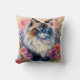 Ragdoll Cat Floral Portrait Art Throw Pillow