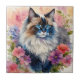 Ragdoll Cat Floral Portrait Ceramic Tile