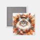 Magnet features an adorable rag doll cat wearing a scarf and hat, surrounded by fall leaves and decor.