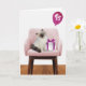 Cute ragdoll cat with a gift and pink party balloon for 45th birthday