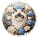 Ragdoll Cat With Blue Hydrangea Flowers Ceramic Knob