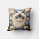Ragdoll Cat With Blue Hydrangea Flowers Throw Pillow