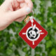 The key chain is made of metal and really sturdy. The flower design is really cheerful. The logo and colors are clear and crisp!