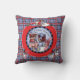 Red, white, and blue Raggedy Treasures pillow with several boy and girl ragdolls and a plaid background.