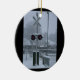 Railroad Crossing (blue) Ceramic Ornament
