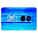 Here is a unique photo magnet featuring a railroad crossing over cantilever customized for blue lights rather than traditional red color which complement the blue sky in the background. This awesome creation of fine art photography with a twist as to flasher colors is great for anyone who is a rail fan and/or works for a railroad and for law enforcement, especially railroad police officers seeking railroad photography that stands out. This novelty item is great for year round gift giving including holidays and will look good on refrigerators, file cabinets, etc.