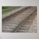 Railroad tracks are used on railroads, which, together with switches guide trains without the need for steering. Tracks consist of two parallel steel rails,laid on cross ties that are embedded in ballast to form the railroad track. The rail is fastened to the ties with spikes, lag screws, bolts, or clips.