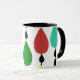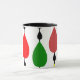 This mug has a mid-century modern design of drops on lines that look like rain chains.