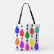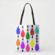 This tote bag has a mid-century modern design of drops on lines that look like rain chains.