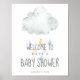 This rain cloud boy baby shower welcome poster is perfect for a modern baby shower. The cute and simple design features pastel teal, light blue, yellow and grey watercolor raindrops falling from a soft gray cloud. Customize the poster with the name of the mom-to-be and the shower date.
