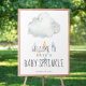 This rain cloud boy baby sprinkle welcome poster is perfect for a modern baby sprinkle. The cute and simple design features pastel teal, light blue, yellow and grey watercolor raindrops falling from a soft gray cloud. Customize the poster with the name of the mom-to-be and the shower date.