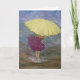 This whimsical image of a young woman, well-healed, umbrella in hand, not being affected by the rainy day. She joyfully taps her heals in the puddles of water. A multi-purpose greeting card image serving a variety of occasions, from the humous to the inspirational.