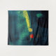 The original, abstract artwork by ZoeSPEAK on this Wall Tapestry was created from Zoe’s original closeup photograph of a banana leaf. The undulating green curves of the huge, ribbed leaves form the background for the raindrops and colors, red and yellow.