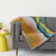 A quality printed throw has its advantages. This is a much finer weave throw than its loopier cousins, and though lighter, it is worth the investment for custom room accessorizing. The back is much prettier than the typical brown, and the fringe on the long sides very vivid, the selvage nicely done. Before photographing, I washed the throw in cold water, delicate, with a thicker woven throw the same size. On tumble dry low, this throw was dry in half the time as the other. This is a very practical quality if you use throws for furniture covers or to wrap up in frequently. The sleekness of the fabric makes it a great layer for accenting or protecting without the feeling of sitting on too much stuff. Perfect for napping or when you feel a light chill coming on. The color printing is beautiful and on this fabric, matched the design and color of my Photoshop image. This is an advantage for blending room fabrics and colors. The fringe on the short sides prints the colors from the design image and therefore varies from the side fringe. I streaked a white fractal line through the plaid pattern to give the illusion of weaving. This printed as crisp as an illusory thread, and put some white in the short side fringe, showing another advantage of print vs loomed- for artistic purposes, line lines, detail, and color integrity can be planned and preserved. My loomed throws have color limitations and more of a needlepoint texture. Print throws reproduce an exact image. The throw felt a little stiff straight out of the package, but this went away in the first delicate wash. Of course I searched the wash water for ink or bleeding and there was none.