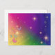 Dive into a world of pure color with this enchanting abstract rainbow gradient postcard. The design features a stunning spectrum background blending from vibrant pink and purple to luminous yellow and green. This magical scene is illuminated by delicate, twinkling fairy lights and bright, ethereal sparkles, creating a dreamy, starlit effect.