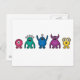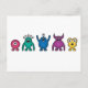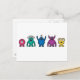 a family of cute / kawaii alien monster cartoon / illustrations in rainbow colours (pink, green, blue, purple and yellow)