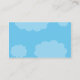 A cute business card eaturing a stunning vivid vector rainbow on a blue background. It curves to meet to white fluffy clouds on each side. The right cloud has a pink heart decorating it. It rain downs 4 yellow stars and 6 blue raindrops.