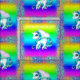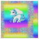 A very colorful and pretty unicorn pattern fabric featuring a repeating design of unicorns with blue hair and mane, large eyes and cute pink wings. Each unicorn is surrounded by a frame of rainbow glitter, with a beautiful rainbow gradient in the background. This gorgeous rainbow-colored material would make a great craft project for kids, or for making kids' clothes, cushion covers, tote bags, decorations for unicorn birthday or baby shower parties, and more.