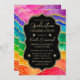 Rainbow and Gold Glitter Alcohol Ink Graduation Invitation