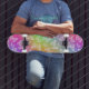 Rainbow and White Butterfly Motif Pattern Skateboard