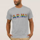 For years I thought this design should be available, a basic ARMY text shirt but in the colors of the rainbow. Finally I just put the design together myself.