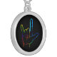 Cool necklace that is perfect for all those who love sign language and saying I Love You. Featuring an I Love You in Sign Language hand. Fully customizable. From our Sign Language Necklaces Collection.