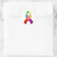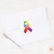 An awareness ribbon of end-to-end Rainbow Pride stripes for acceptance and understanding of gay, queer, lesbian, bi, and trans people. Curvaceous lines add an active, accessible tone to visibility.