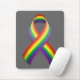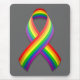 An awareness ribbon of side-by-side Rainbow Pride stripes for acceptance and understanding of gay, queer, lesbian, bi, and trans people. Curvaceous lines add an active, accessible tone to visibility.