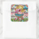 Rainbow Baby Carriage with Glitter Sun and Clouds Square Sticker