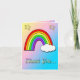 Rainbow Thank You note card. Stylish & trendy Baby Shower Thank You note card. Is the perfect finishing touch for your Rainbow baby shower. Our Rainbow baby shower thank you note card features a light blue and pink gradient background, a rainbow with stars and a cloud. Stylized text is Thank You!. Inside card reads: for being so sweet! and is customizable. Matching items including baby shower postage, address labels, favor stickers, Baby shower invitations & thank you stickers are also available in our shop.