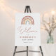 Welcome your baby shower guests with our rainbow sign, featuring watercolor boho rainbow. Personalize with your baby shower details in simple and modern layout and elegant handwritten style font.