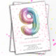 Rainbow Balloon 9th Birthday Girl Party Number Invitation