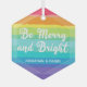 Beautiful gay pride Christmas ornament in pretty rainbow colors that reads Be Merry and Bright. Be loud and proud with gorgeous LGBTQ holiday cheer with an LGBT couple's names in white.