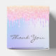 Elegant, classic, glamorous and girly for a 21st (or any age) birthday party favors. A trendy rainbow colored background in pink, purple, rose gold and mint green. With the text: 21st Birthday and Thank You written with a modern hand lettered style script. Decorated with faux glitter drips, paint dripping look in purple, pink and rose gold. Personalize and add a name and a date. Gray colored text.