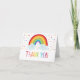 This cute birthday thank you card features a colorful rainbow and clouds with rainbow confetti and faux gold glitter accents.