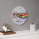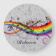 Black musical notes floating on a rainbow of swirling rainbow colors. The background is gray musical notes on a lighter shade. Add your own personalized name to create a unique gift for the music lover. sgb01
