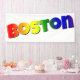 Rainbow Boston Font vinyl banner is designed with different bright rainbow fonts on a white background. Proudly represent living in Boston, Massachusetts. Grommets are extra.